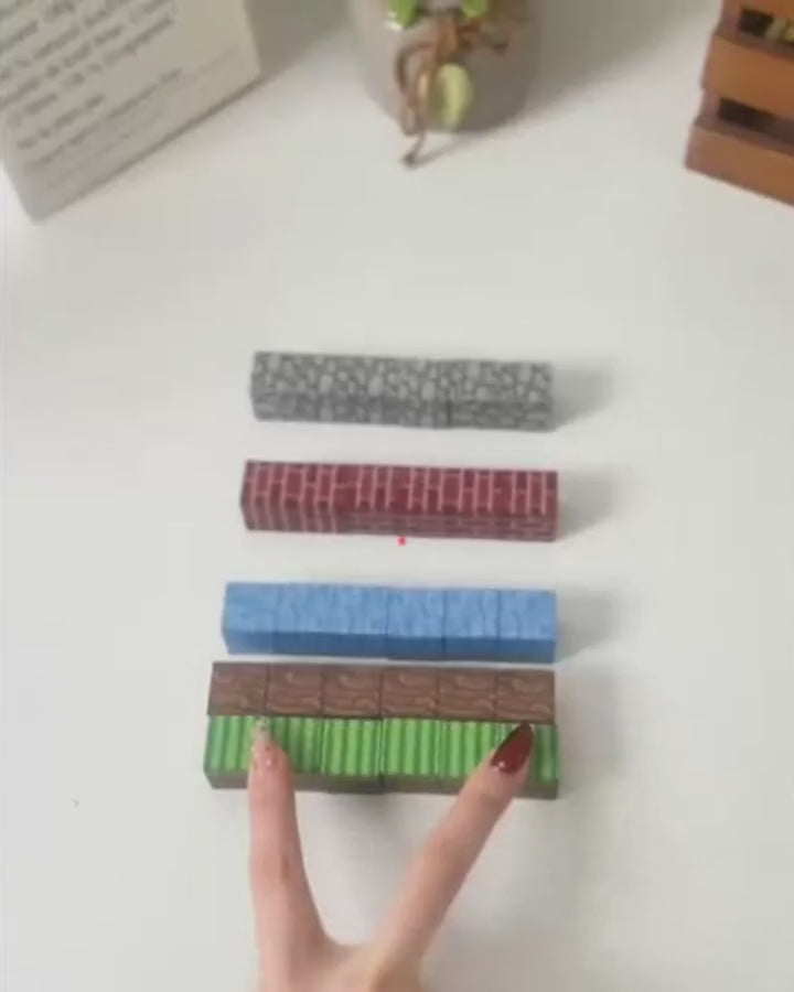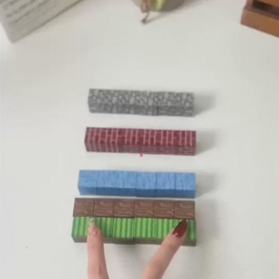 🔹 75 piezas con texturas únicas: césped, agua, ladrillo, madera y piedra para crear paisajes como cascadas, árboles y casas.